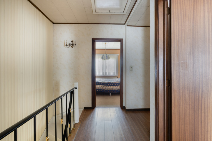Le deuxième étage comprend 3 chambres, un placard dans le couloir et une salle de bains avec douche, lavabo et toilettes. De plus, le grenier multifonctionnel est accessible par un escalier escamotable.