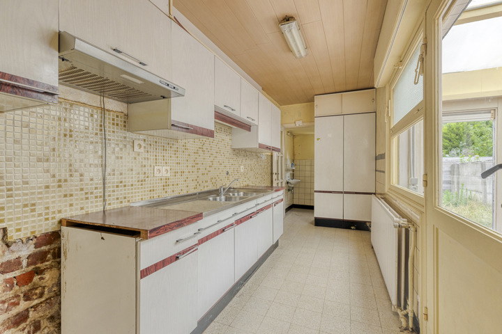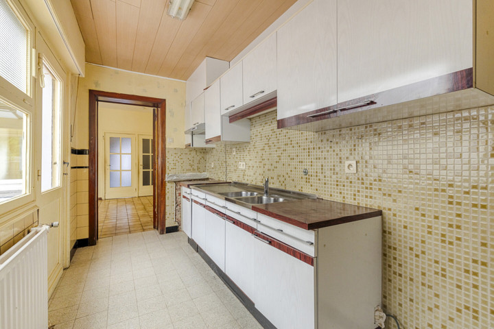 *** SOUS COMPROMIS *** Au ring d'Alost, à proximité de l'hôpital AZorg (hôpital OLV), à distance de marche du centre et de la gare et à 5 minutes de l'autoroute, vous trouverez cette solide maison familiale en partie à rénover. Elle se compose d'un hall d'entrée séparé avec des escaliers menant au premier étage, d'un spacieux séjour (37m²) avec une cuisine adjacente et des toilettes. La cuisine donne sur la véranda qui surplombe le petit jardin de ville. Le premier étage comprend un palier avec des escaliers menant au grenier, 2 chambres et une salle de bain. L'étage mansardé a été divisé en deux pièces. Le bâtiment principal dispose d'un sous-sol avec chauffage et possibilité de brancher un lave-linge et un sèche-linge. Dans cette propriété, les fenêtres ont été en grande partie remplacées en 2009 et l'électricité est conforme. Le propriétaire dispose également d'un certificat de conformité locative. En résumé, ce bien possède de nombreux atouts. Moyennant quelques rénovations, il pourrait tout à fait vous convenir. Intéressant également en tant qu'investissement ! Intéressé(e) ? N'hésitez pas à nous contacter pour une visite à l'adresse affligem@immoaccenta.be.
