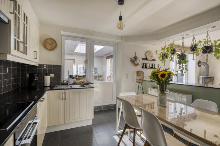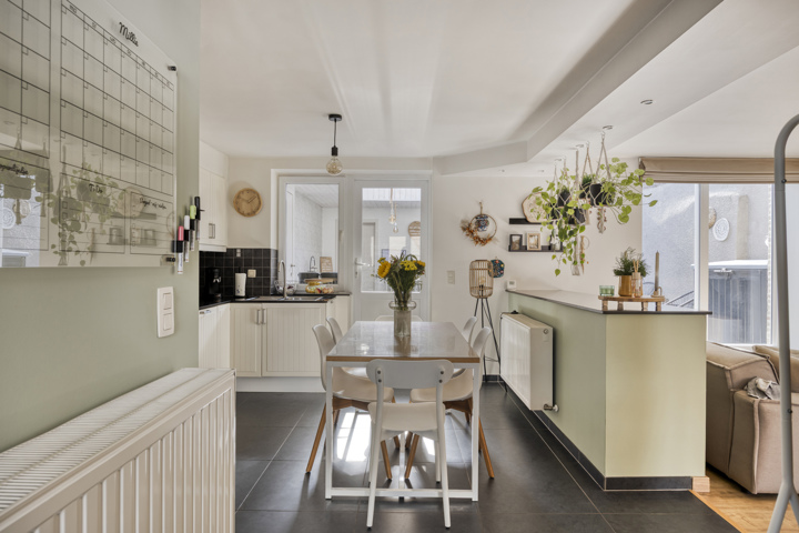 *** SOUS COMPROMIS *** Cette maison prête à emménager est située à quelques pas des commerces/grands magasins, écoles, transports en commun et voies de communication. L'échangeur E40 Affligem se trouve à quelques minutes. La maison a été rénovée avec goût en 2012 et est parfaitement entretenue. Elle est agencée comme suit : le rez-de-chaussée comprend un hall d'entrée avec toilettes pour invités, un salon confortable avec une cuisine ouverte de qualité (appareils Miele) équipée d'un plan de travail en composite, d'un évier simple, d'un réfrigérateur, d'une plaque à induction, d'une hotte aspirante, d'un lave-vaisselle et d'un four. La cuisine donne accès à une pièce lumineuse qui peut être utilisée comme salle à manger/salle de loisirs, suivie du débarras/buanderie. À l'extérieur, il est agréable de se détendre sur la terrasse ensoleillée clôturée où vous pouvez profiter d'une intimité totale. Au premier étage, nous trouvons un hall de nuit, 3 chambres dont 2 équipées d'armoires sur mesure et la salle de bains avec une baignoire, un lavabo simple et des toilettes. Atouts supplémentaires : maison prête à emménager | EPC B | 17 panneaux solaires | Électricité conforme | Possibilité de stationnement à proximité de la maison | Idéal comme investissement ou première maison.