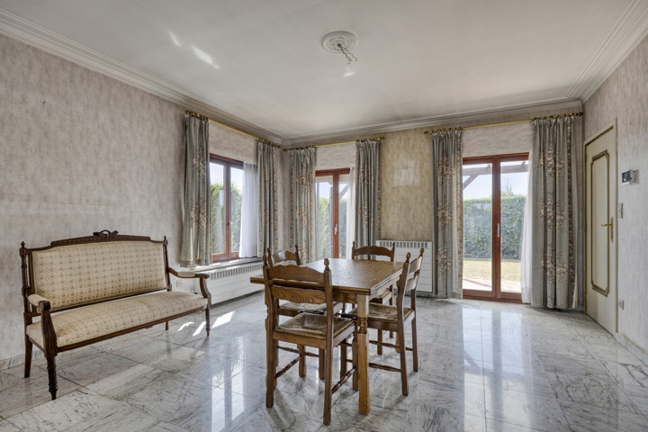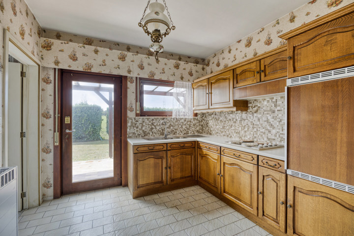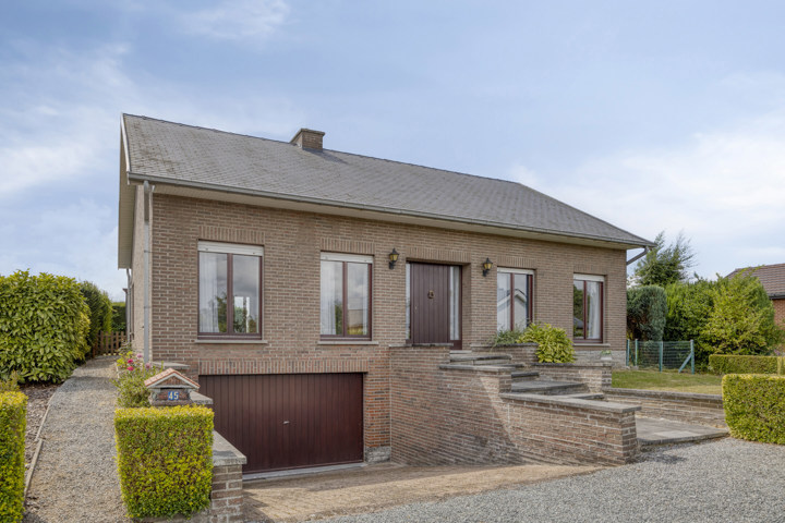 **** SOUS COMPROMIS **** Dans un quartier résidentiel calme, vous trouverez ce bungalow à rénover, situé dans une impasse bordée de champs. La décoration datant de 1970 doit être modernisée. Il est agencé comme suit : hall d'entrée spacieux avec toilettes, séjour de 42 m² très lumineux, cuisine (le séjour et la cuisine donnent toutes deux accès à la terrasse et au jardin orienté sud-ouest), hall de nuit avec accès au grenier et à la cave, salle de bains et 2 chambres spacieuses. En plus de ce niveau de 120 m², la maison dispose d'une cave de 120 m² supplémentaires. Celle-ci comprend un garage, une chaufferie et des espaces de rangement. Vous recherchez une maison à la structure solide et au potentiel élevé, située dans un cadre verdoyant et facilement accessible ? N'hésitez pas à nous contacter pour une visite via affligem@immoaccenta.be.