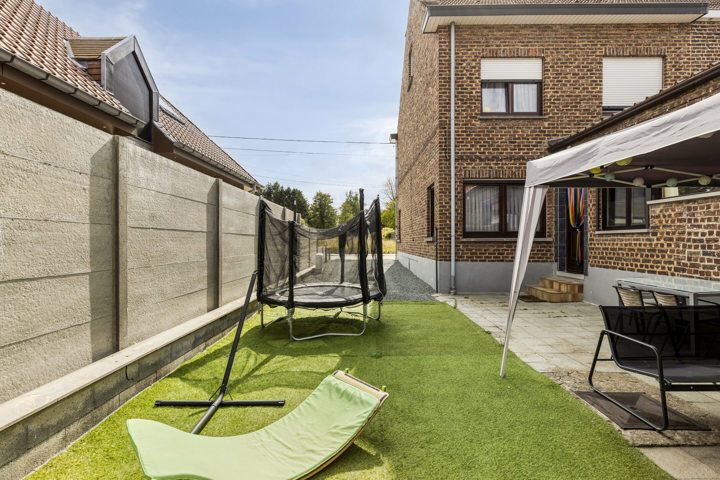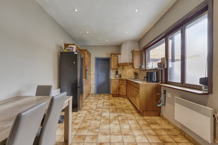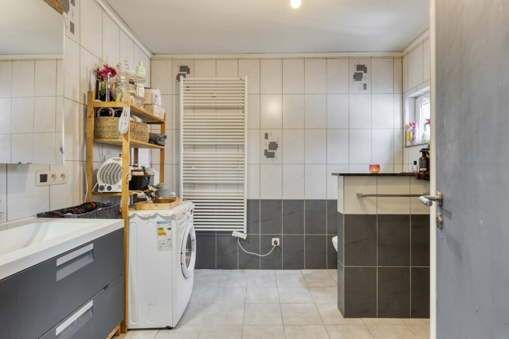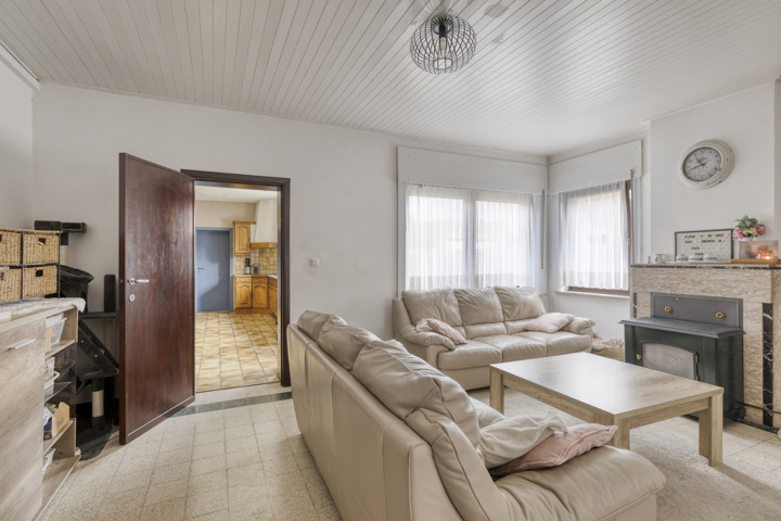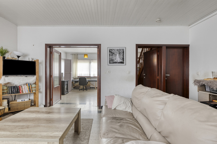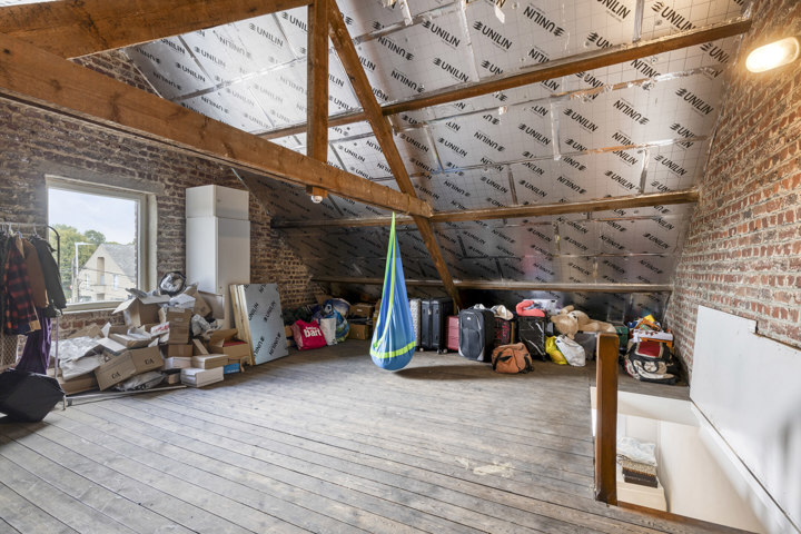 Au rez-de-chaussée, la maison offre un hall d’entrée, un vaste séjour d’environ 38 m² aménagé en salle à manger et salon, une cuisine avec coin petit-déjeuner ainsi qu’une salle de bains. À l’étage, le hall de nuit donne accès à trois grandes chambres. Le grenier, accessible par un escalier fixe, peut aisément être transformé en deux chambres supplémentaires. Une cave offre également un espace de rangement supplémentaire. À l’arrière, vous trouverez un atelier ou garage d’environ 40 m². L’extérieur dispose d’une agréable cour avec petit jardin, idéal pour profiter du soleil en toute tranquillité.