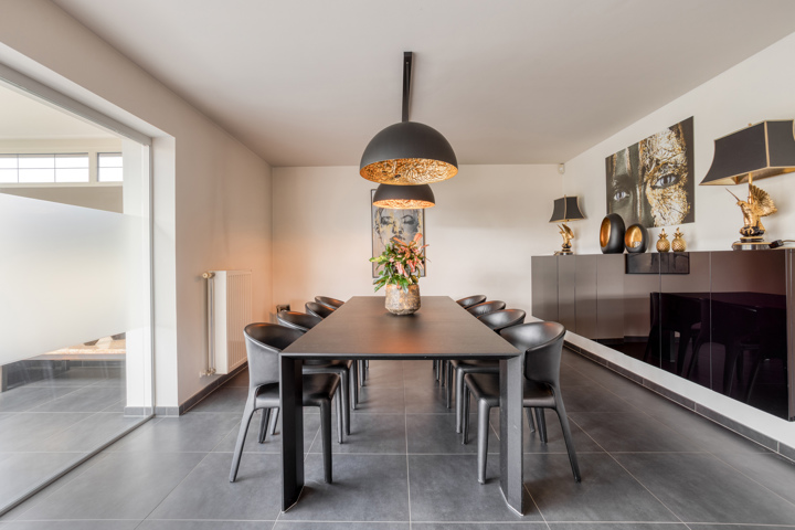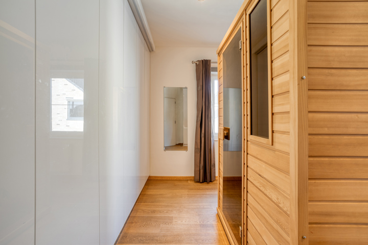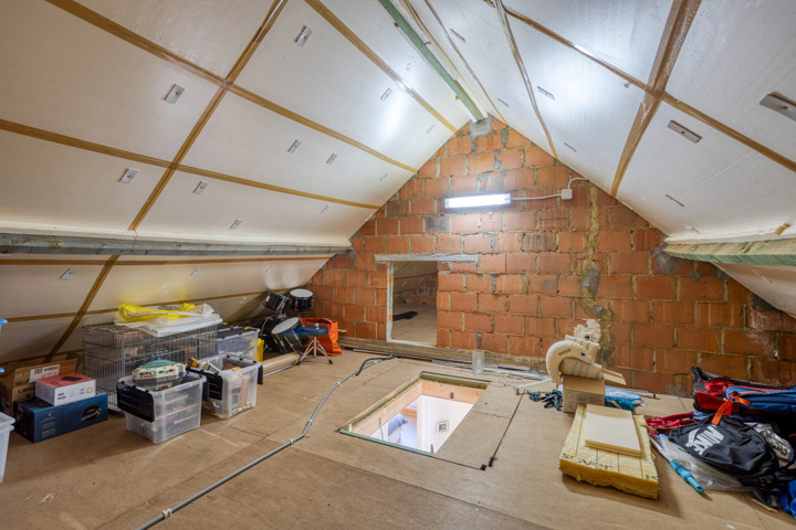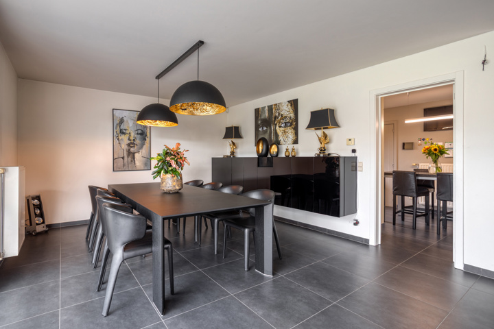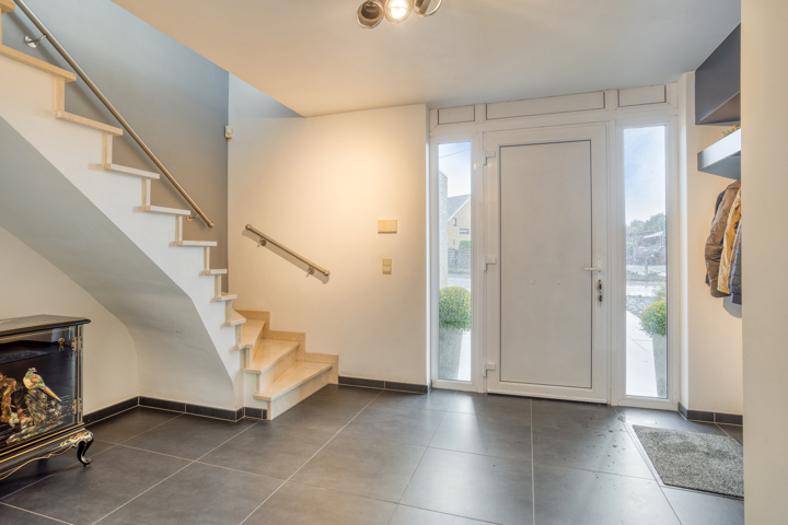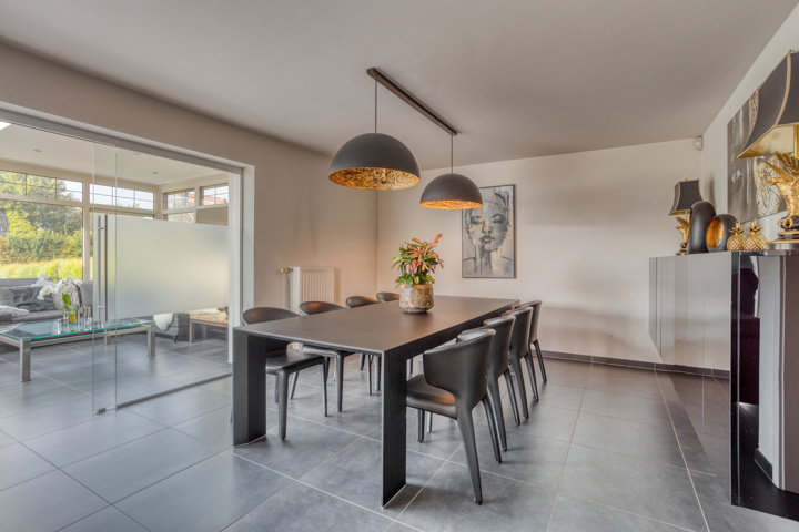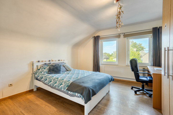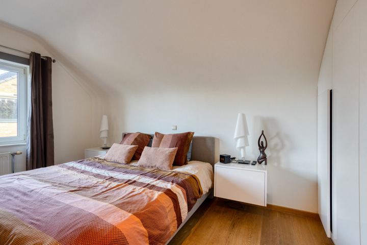 Cette maison dispose d'un espace de vie généreux de 46 m² avec une cheminée à gaz agréable, parfaite pour se détendre après une journée bien remplie. Elle est suivie d'une véranda lumineuse de 30 m², qui offre une vue magnifique sur le jardin et relie ainsi harmonieusement l'intérieur et l'extérieur. À côté du hall d'entrée spacieux avec toilettes pour invités, nous trouvons la cuisine bien équipée, la buanderie (qui donne également sur le jardin sur le côté) et le double garage, qui rendent la vie quotidienne particulièrement confortable. À l'étage, vous trouverez le hall de nuit avec toilettes, trois chambres spacieuses, la salle de bains (avec double lavabo, baignoire et douche séparée) et un grenier pratique avec un espace de rangement supplémentaire.