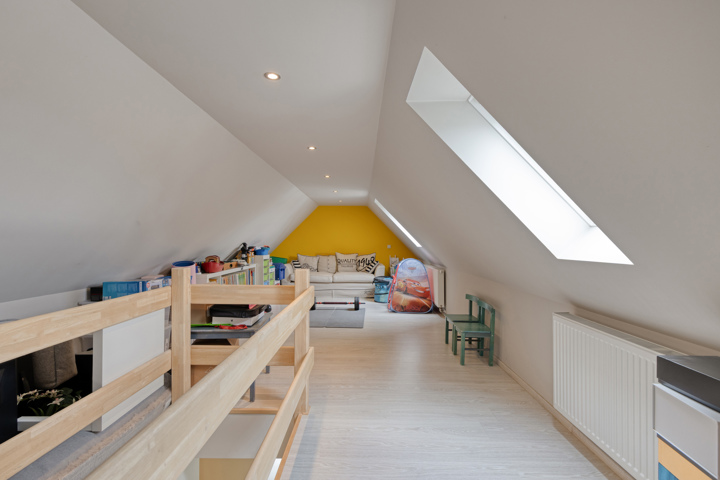 Le premier étage comprend un hall de nuit, des toilettes séparées, une salle de bains avec baignoire et douche, et trois chambres spacieuses. Le grenier entièrement aménagé, accessible par un escalier fixe, sert de quatrième chambre ou de salle de loisirs.
