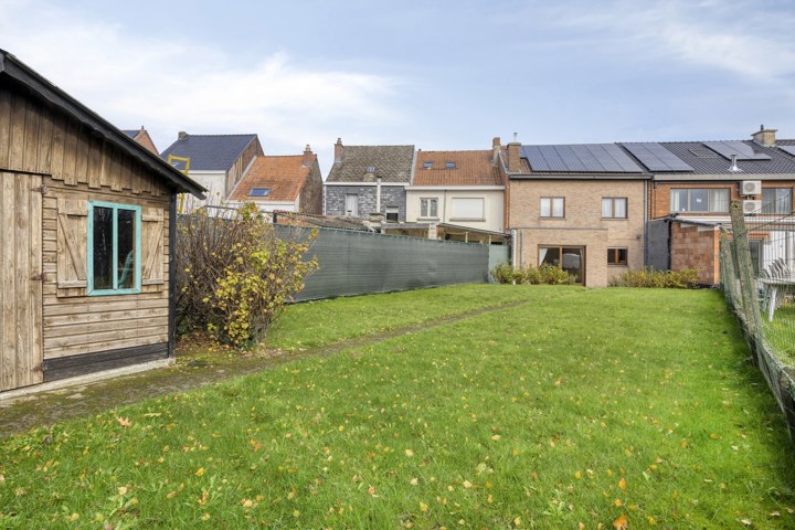 Derrière la maison s'étend un jardin ensoleillé orienté à l'ouest, avec une terrasse récemment aménagée et un abri de jardin pratique à l'arrière du terrain, idéal pour les loisirs ou comme espace de rangement supplémentaire.