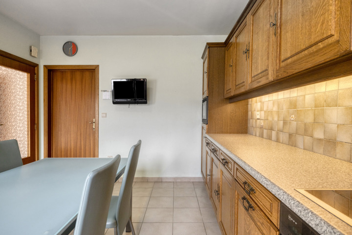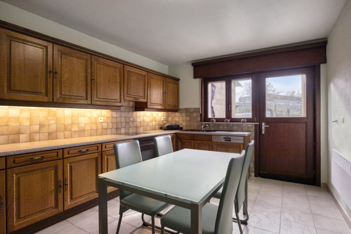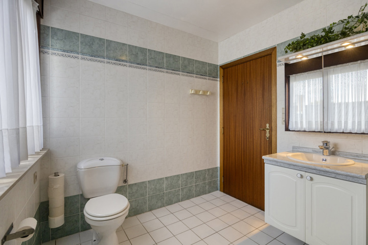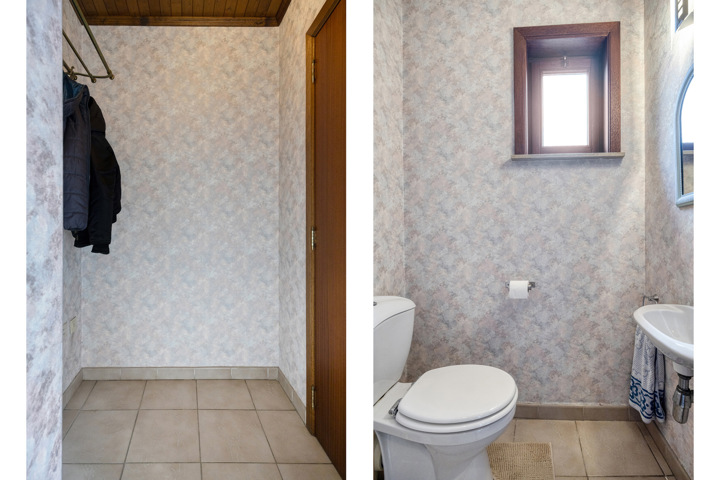 En entrant dans la maison, vous arrivez dans le hall d'entrée avec vestiaire et toilettes séparées pour les invités. Vous accédez ensuite au salon particulièrement spacieux et lumineux qui se prolonge naturellement par la cuisine entièrement équipée, parfaite pour ceux qui aiment cuisiner et recevoir dans une ambiance chaleureuse. Depuis le salon, vous avez une vue agréable sur le jardin. Le rez-de-chaussée dispose également d'un garage intégré avec tous les équipements techniques, notamment un adoucisseur d'eau et une installation de panneaux solaires (avec des certificats de 450 € par 1 000 kWh). Grâce à la production excédentaire, vous bénéficiez ici d'une consommation d'électricité pratiquement nulle.