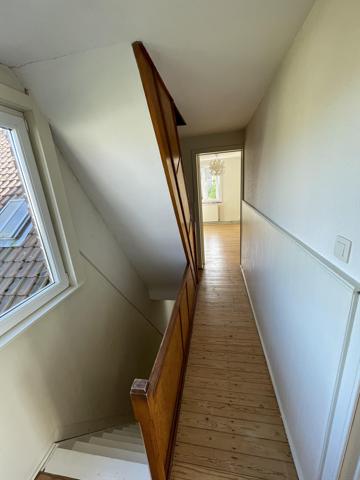 Deze 3-gevel woning is zeer rustig gelegen in doodlopende straat. Het gelijkvloers bestaat uit een inkomhal, trappenhal met berging onder de trap, woonkamer, keuken, veranda (met aansluiting voor wasmachine en droogkast) met toegang naar de zongerichte koer, badkamer (ingericht met toilet, lavabo en douche). De verdieping bestaat uit een nachthal met toegang tot de afgewerkte zolder(hobbyruimte/4de slaapkamer) en drie slaapkamers. Deze woning heeft dubbele beglazing in PVC en centrale verwarming op aardgas. Ideaal voor jong gezin!