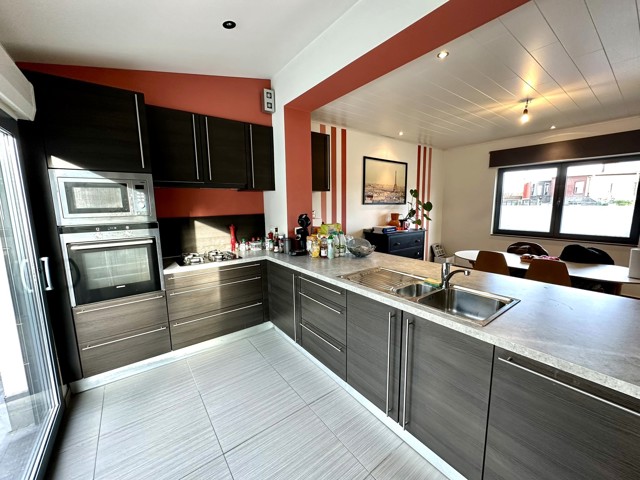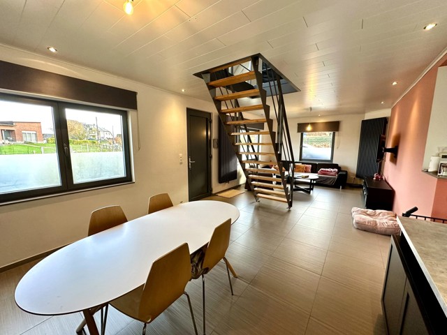 Deze woning is gelegen in een kindvriendelijke buurt en in de nabijheid van winkels, scholen, openbaar vervoer en verbindingswegen. Ze heeft de volgende indeling: een ruime en lichtrijke leefruimte (37,20m²) met ingerichte open keuken (11,80m²) voorzien van een spoelbak, gasfornuis, dampkap, oven, microgolfoven en vaatwasmachine. Aangrenzend vinden we de badkamer (9m²) met enkele lavabo, ligbad met douchefaciliteit, toilet en aansluiting voor wasmachine en droogkast. Achteraan treffen we een ruime slaapkamer (13,60m²). De eerste verdieping omvat een slaapkamer over de volledige lengte van de leefruimte ( 37,20m²). Achteraan de woning bevindt zich een groot omheind zuidwest gericht terras (71,50m²). Links van de woning is er parkeermogelijkheid voor 2 wagens. Vrij vanaf 01/01/2025! Indien u graag een bezoek wenst, aarzel niet ons te contacteren op affligem@immoaccenta.be