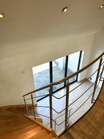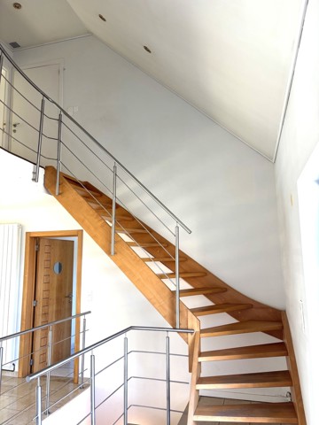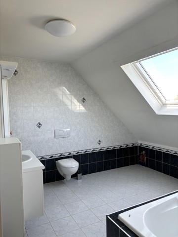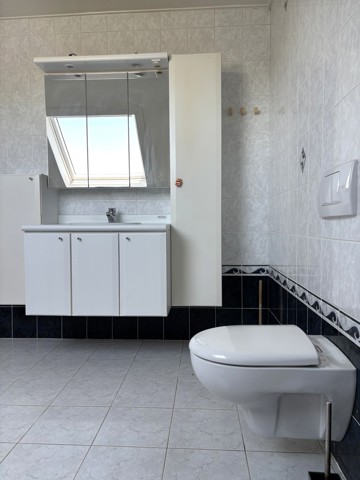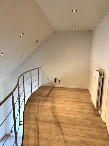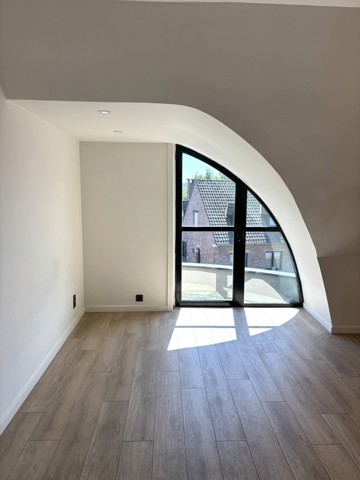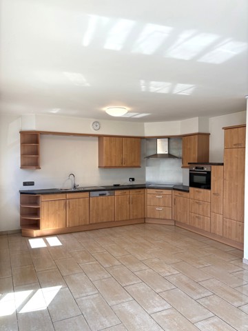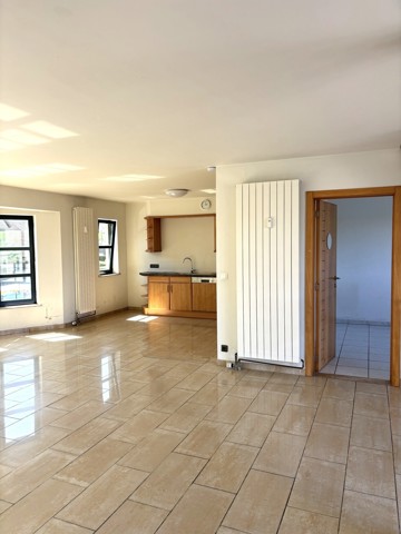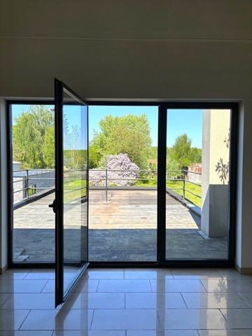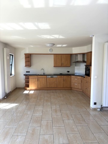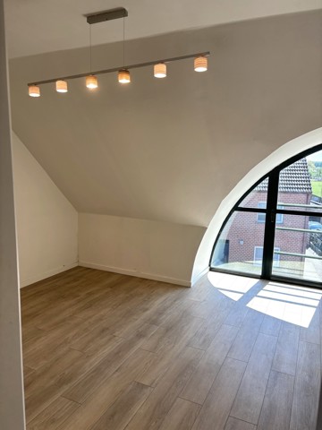 Indeling: Gelijkvloers: aparte inkomhal/traphal met toilet. Eerste verdieping: ruime lichtrijke leefruimte met ingerichte open keuken voorzien van een keramische kookplaat, dampkap, koelkast, dubbele spoelbak, vaatwasmachine en combi-oven met aanpalende berging/wasplaats. Aansluitend aan de leefruimte vinden het prachtige zongerichte terras. Tweede verdieping: nachthal met overloop, badkamer met enkele lavabo, ligbad en toilet en 2 slaapkamers waarvan 1 met dressing. Het appartement is reeds volledig voorzien van verlichting. Beschikbaar vanaf 01/01/2026.