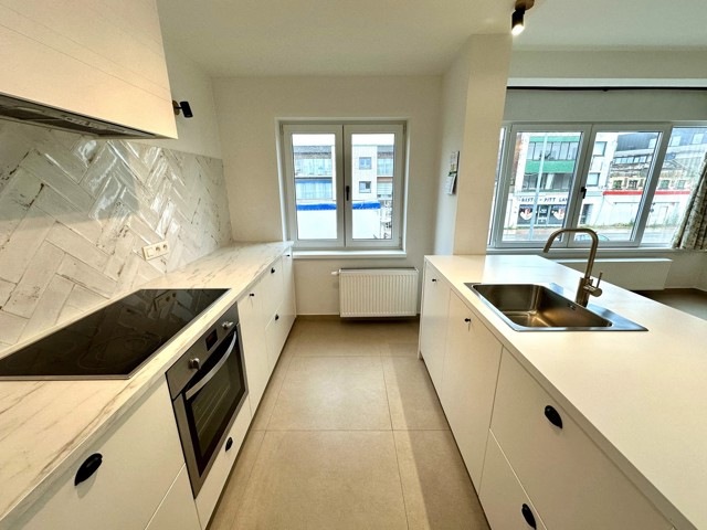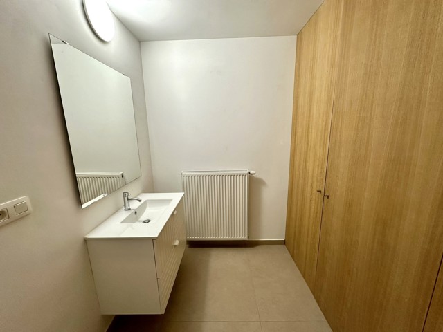 Indeling: eerste verdieping: inkomhal/nachthal (4,30m²), lichtrijke leefruimte (25m²) met open ingerichte keuken (7,80m²) voorzien van een keramische kookplaat, dampkap, vaatwasmachine, microgolfoven, oven, koelkast met vriesvak en enkele spoelbak, badkamer (5,60m²) met inloopdouche, enkele lavabo, toilet en inbouwkast met aansluiting voor wasmachine en droogkast, aparte toilet, slaapkamer 1 (16,20m²) met inbouwkasten en slaapkamer 2 (8m²) met aansluitend het achterliggend zuidwest gericht terras (6,80m²). Er is eveneens 1 afgesloten garage in de huurprijs inbegrepen, deze bevindt zich achteraan het gebouw. Het appartement is gelegen in de nabijheid van winkels, scholen, openbaar vervoer en station. Geen gemeenschappelijke lasten! Vrij op 01/02/2026! Indien u graag een bezoek wenst, aarzel niet ons te contacteren op affligem@immoaccenta.be