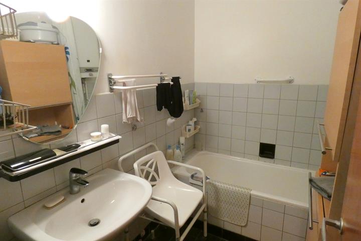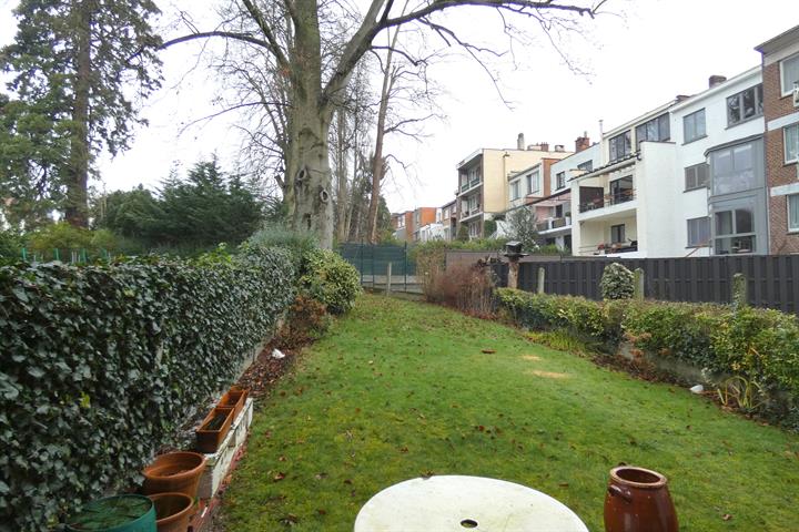 Gelijkvloers: 1 slaapkamer appartement met ruime tuin (+- 100m²) bewoonbare oppervlakte +- 65m² verhuurd aan €500 (niet geïndexeerd gedurende 10 jaar).
