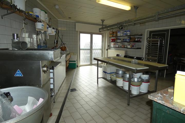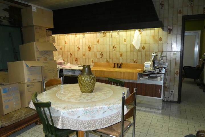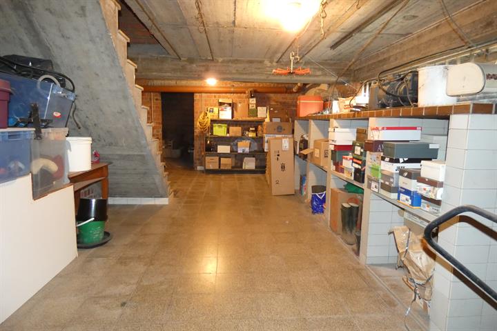 slagerij(inrichting en atelier met koelcel nog 100% operationeel). Achter de toenmalige winkelruimte bevindt zich een 1ste keuken, met langs de linkerzijde toegang tot het woongedeelte(de eerste verdieping) met links de ruime garage(3 wagens) en een eerste toegang tot de kelderruimte(tweede toegang bevindt zich net achter de winkelruimte), keuken en werkplaats geven allebei toegang tot de achterliggende tuin. Het ruime woongedeelte(188m²) beschikt over een centrale gang waarop de leefruimte(47m²), de (2de) keuken, 3 slaapkamers, de badkamer, het bureel en het zongericht terras aansluiten. Op de -1 verdieping bevindt zich de kelder, met eveneens toegang tot de tuin, verdeeld over het volledige gebouw en opgedeeld in verschillende compartimenten. Dit pand biedt zoveel mogelijkheden omwille van zijn grootte, degelijkheid, ligging en bereikbaarheid. Wil u deze opportuniteit bezoeken aarzel dan zeker en vast niet ons te contacteren op het nummer 0477/53.29.56.