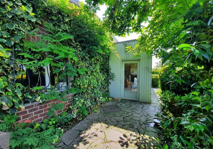Op de 1ste verdieping: nachthal die ons toegang biedt tot 3 slaapkamers en een badkamer. Met een uitschuifbare trap naar zolder. En voor de buitenmensen onder ons , die kunnen genieten van een prachtig aangelegde natuurlijke tuin met een vijvertje, serre en klein atelier. En niet te verwaarlozen een prachtige vijgenboom met heel wat vruchten....