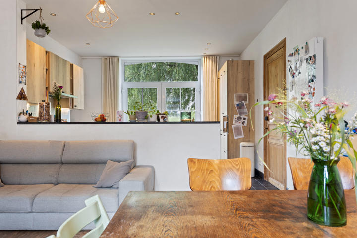 OPTIE OPTIE AccentA biedt u deze zeer toffe karakterwoning aan met grote tuin (21a) in het gezellige Bever. Deze woning werd grotendeels gerenoveerd met behoud van authentieke elementen. op het gelijkvloers: Gezellige leefruimte met open keuken (helemaal vernieuwd met vloerverwarming), wasplaats, grote voorplaats en een polyvalente ruimte met trap naar de 1ste verdieping. Hier geeft een nachthal toegang tot 3 grote slaapkamers (waarvan 1 met dressing) en een badkamer. Nog meer ruimte nodig dan heeft u nog een zeer grote open zolder (volledig geïsoleerd) die u nog veel uitbreidingsmogelijkheden biedt.