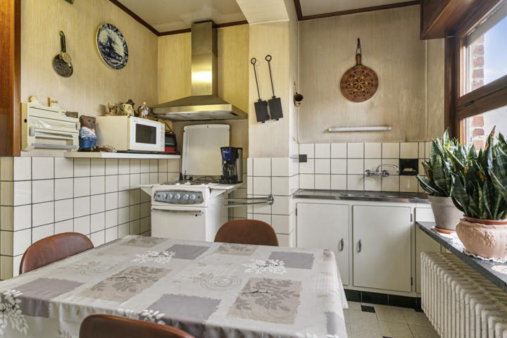 *** KIJKDAG 29/10 tussen 09u - 12u *** OP AFSPRAAK ***Deze solide gesloten bebouwing is zeer centraal gelegen en bevindt zich in nabijheid van scholen, winkels, station en verbindingswegen. De woning omvat op het gelijkvloers een inkomhal (7m²), een ruime leefruimte (33m²) met open haard en een lichtrijke keuken (15,50m²) voorzien van een dubbele spoelbak, een elektrische kookplaat, dampkap, oven, koelkast en diepvries. De nachthal (10,50m²) op de eerste verdieping geeft toegang tot 4 slaapkamers (16,30m², 15,20m², 12m² en 10,50m²) alsook de badkamer (5,80m²) met ligbad, enkele lavabo en toilet. De zolder (72m²) wordt momenteel gebruikt als bergzolder maar hier kunnen zeker extra slaapkamers gemaakt worden. De woning is deels onderkelderd (22,20m²) en beschikt over een inpandige garage (20,70m²) die momenteel gebruikt wordt als berging/wasplaats met aansluitend een toilet. Achteraan de tuin vinden we nog een 2de garage (14m²) dewelke toegankelijk is via de Peter Benoitstraat. Zin om deze ruime woning om te toveren tot een echte parel? Aarzel niet ons te contacteren: eva@immoaccenta.be