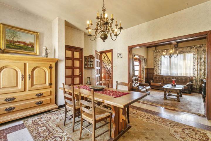 *** ONDER COMPROMIS *** Ruime karakterwoning met charme en uitstraling van weleer. Deze woning biedt een zee aan mogelijkheden en kan ingericht en verbouwd worden naar eigen behoeften. Vandaag is zij ingedeeld als volgt: - gelijkvloers: inkomhal, leefruimte(salon- en eetkamergedeelte) met aansluitend de keuken met daaropvolgend een lichtrijke woonkamer. Op het gelijkvloers bevindt zich ook nog de doucheruimte met toilet en de garage met verschillende opbergmogelijkheden. De garage geeft ook aansluiting met de tuin. - op de verdieping: nachthal met reeds 3 slaapkamers, vanuit een tussenruimte(eventueel bureau) bereikt men de 4de slaapkamer. De gehele bovenverdieping beschikt nog over een zolder dewelke perfect kan bewoonbaar gemaakt worden. Het hoofdgebouw is volledig onderkelderd waarin zich het verwarmingstoestel bevindt. Als kers op de taart vinden we achteraan in de tuin een oude loods dewelke desgevallend, indien nuttig voor de koper, kan gerenoveerd worden, indien overbodig kan afgebroken worden. Interesse om deze woning met al haar mogelijkheden eens te komen bezoeken? Contacteer ons voor een vrijblijvend bezoek via affligem@immoaccenta.be.