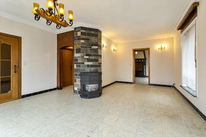 Zeer solide half-open bebouwing op een boogscheut van het centrum, diverse winkels/warenhuizen, scholen en openbaar vervoer (zowel trein als bus). De woning werd volledig opgetrokken in beton en biedt volgende ruimten - Op het gelijkvloers: een inkomhal, een lichtrijke leefruimte, een keuken (+- 19m²), een badkamer, een wasplaats, een afzonderlijk toilet en een slaapkamer. De 1ste verdieping omvat 2 slaapkamers en een zolder/speelkamer (toegankelijk via de kinderkamer). Achteraan de woning bevindt zich een ruime loods (+- 85m²). Deze loods is ideaal voor het stockeren van materiaal, wagens, ... of men kan deze omvormen tot extra leefruimte/praktijkruimte/.... Bovendien beschikt men over een ruime garage met bijhorende kelder. In deze kelderruimte heeft men tevens bronwater ter beschikking. Wenst u meer informatie of een bezoek? Aarzel niet en contacteer ons snel!