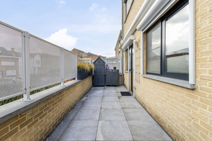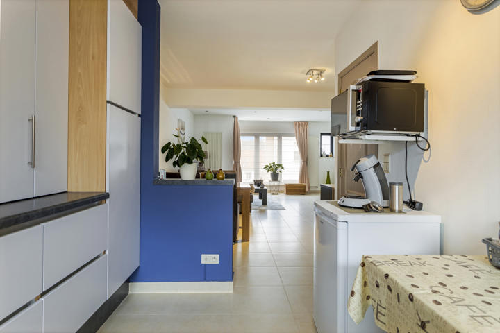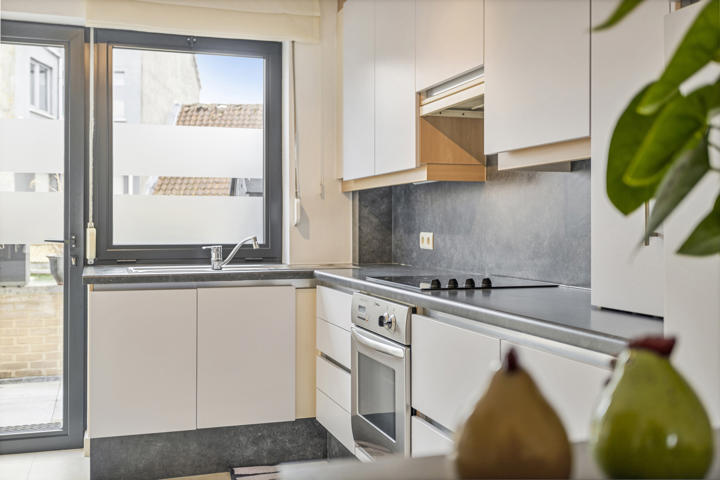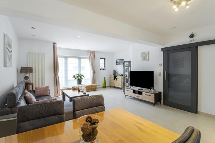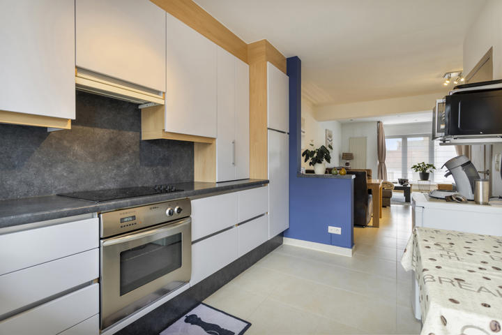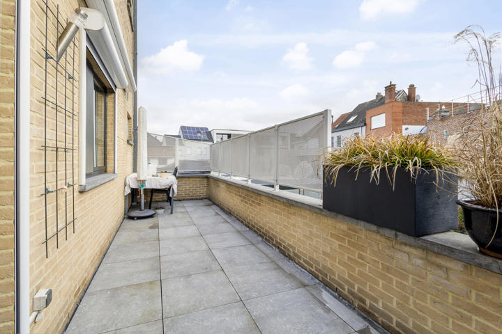Ruim 2-slaapkamer appartement op een zeer gunstige locatie in nabijheid van winkels, scholen, openbaar vervoer. Het appartement dateert van 2003 en omvat een inkomhal die toegang geeft tot de grote leefruimte met een open keuken. Deze luxueuze keuken is voorzien van alle toestellen voor optimaal hedendaags comfort. Verder beschikt het appartement over een badkamer met inloopdouche, apart toilet en 2 slaapkamers (12m² en 9m²). Achteraan het appartement bevindt zich een ruim terras(16m2) met zonneluifel.