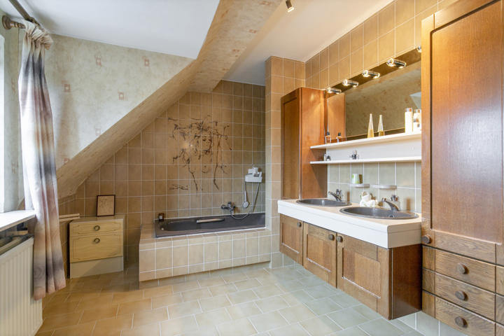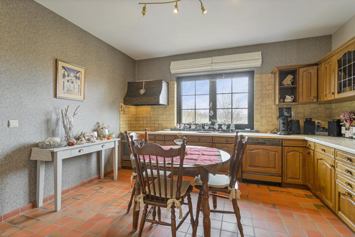 Op een terrein van 17are 35ca heeft deze solide gebouwde woning U het volgende te bieden: een charmante inkomhal met gastentoilet, deze geeft uit op de ruime, lichtrijke woonkamer met gezellige open haard en met zicht op de prachtige tuin, en omliggende velden. Daarnaast bevindt zich de praktische keuken met alle voorzieningen. op de verdieping bevinden zich 3 slaapkamers alsook een zeer ruime badkamer. Door dat de woning volledig onderkelderd en beschikt over een zolder die bereikbaar is via uitschuifbare zoldertrap is er aan opslagruimte absoluut geen gebrek. Het is eveneens mogelijk van 2 wagens te parkeren in de inpandige garage.