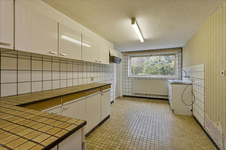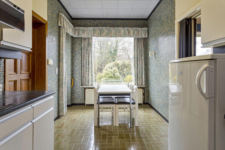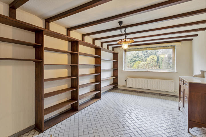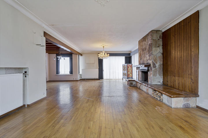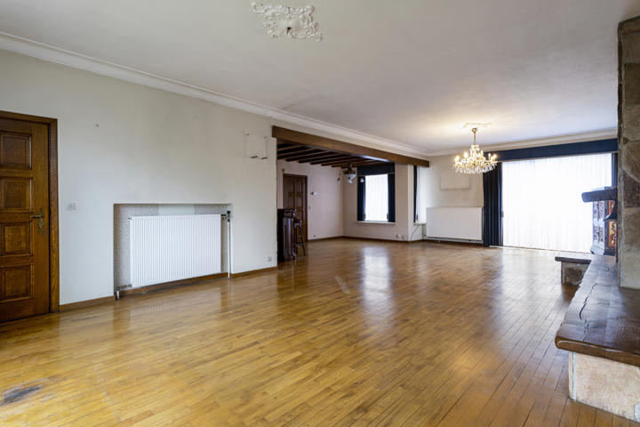 Te renoveren half-open bebouwing op een perceel van 10are 41ca met groot potentieel. Gelijkvloers bestaat uit een ruime inkomhal, prachtige lichtrijke woonkamer met kwaliteitsvolle eiken parket en grote raampartijen. Daarnaast bevindt zich hier eveneens een open haard. De keuken en eetplaats die uitgeeft op het overdekte terras alsook de slaapkamer met en suite badkamer. Op de benedenverdieping is het mogelijk van 2 slaapkamers en een badkamer te installeren, alsook vinden we hier de stookruimte en dubbele garage terug.