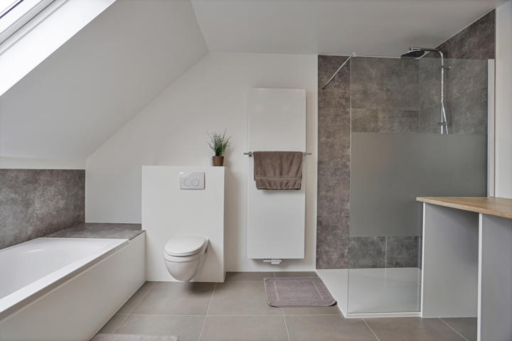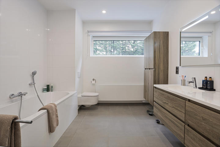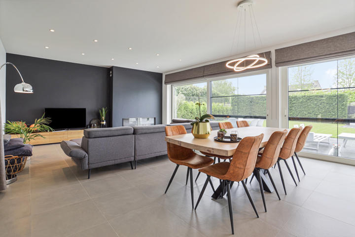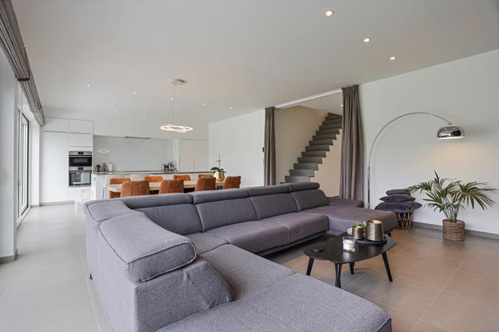 **** ONDER COMPROMIS **** Heel mooie, recente en energiezuinige, (BEN-) woning gelegen op een zijweg van de N9 Brussel-Aalst. Het geheel geeft een zeer verzorgde indruk waar de combinatie van werk en kwalitatief wonen mooi verweven zit. Het gelijkvloers, met een oppervlakte van 168m² is vandaag opgedeeld als volgt: toonzaalruimte(90m²), een berging, een stockageruimte(32m², deze kan ook betrokken worden bij het toonzaalgedeelte), en een centrale traphal die toegang geeft tot de bovenverdieping dewelke ingericht werd tot een ruim één-slaapkamer appartement met alle comfort. Op de -1 verdieping vinden we het woongedeelte dat zowel toegankelijk is via de gelijkvloerse verdieping, alsook afzonderlijk toegankelijk is via de buitenzijde. Het heeft een centrale hal met 3 slaapkamers, een zeer ruime badkamer en een heel gezellige leefruimte met gashaard en open keuken, voorzien van grote raampartijen, uitgevend op het zongeoriënteerde terras met tuin. TROEVEN: , zeer gunstig EPC Label A, beschikt over 32 zonnepanelen(+/- 9000 kw), elektrische laadpaal wagen, gelijkvloers met potentieel: etalageruimte, kantoor, vrij beroep..., woonruimte met zeer veel lichtinval, eventueel dubbele woonst, zeer vlotte bereikbaarheid ... Interesse? Bekijk tevens bijkomende info op www.fosselstraat44.be en aarzel niet ons te contacteren voor een bezoekmoment via affligem@immoaccenta.be.