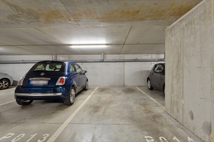De binnenstaanplaats (!in de prijs inbegrepen ter waarde van 25 000 EUR!) bevindt zich vlak voor de ingang van de lift.
