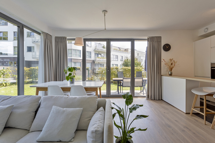 Op enkele stappen van Scheutbos bevindt zich dit lichtrijk 2-slaapkamer appartement met ruim terras en zuidgerichte tuin.