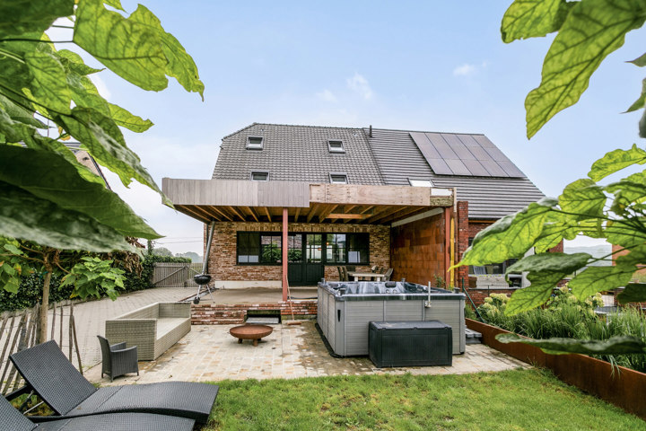 *** ONDER COMPROMIS *** Ruime, recent gebouwde (nog verder af te werken) woning op een rustige locatie in het mooie Denderwindeke. Desondanks de rustige locatie is de woning toch vlot bereikbaar en biedt deze tal van mogelijkheden. De woning werd als volgt ingedeeld: Op het gelijkvloers vinden we een inkomhal met gastentoilet, een ruime leefruimte, een prachtig afgewerkte open keuken met extra eethoek, een berging / wasplaats en de 1ste badkamer (met dubbele douche). De veranda dient nog verder afgewerkt te worden maar is wel reeds vergund. De eerste verdieping omvat de masterbedroom met hoogkwalitatieve dressing, 2 ruime slaapkamers (beide met watertoevoer) en de badkamer. De 2e verdieping werd deels afgewerkt en omvat reeds 1 slaapkamer en 1 zolderkamer (mogelijkheid 5e slaapkamer). De garage (55m²) bevindt zich in de kelderverdieping waar men eveneens een afzonderlijke bureau/praktijkruimte + bergruimte ter beschikking heeft. De achtergelegen (volledig vergund) loods biedt een zee aan ruimte (+- 120m²) en tal van mogelijkheden. De woning dient nog verder afgewerkt te worden (aansluiten ventilatiesysteem, regenwaterputten, trapbekleding, ...) Extra troeven: EPC A | Ideaal voor zelfstandigen/grote gezinnen/hobbyisten | Domotica (basismodel) | Hoogkwalitatieve materialen | Zonnepanelen aanwezig | Jacuzzi inclusief | Wenst u meer info of een bezoek? Aarzel niet ons te contacteren!