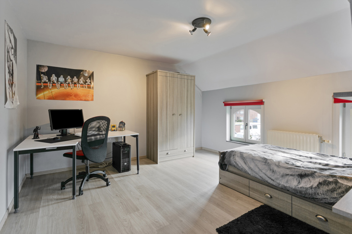 *** ONDER COMPROMIS NA 1STE BEZOEKDAG *** Zeer charmante open bebouwing met zeer strategische ligging op wandelafstand van treinstation, diverse winkels/warenhuizen, scholen en openbaar vervoer. Ze werd als volgt ingedeeld: op het gelijkvloers vinden we een ruime leefruimte (+- 42m²), een nieuwe keuken (anno 2022), een handige wasplaats/berging, afzonderlijk toilet en de badkamer. De nachthal biedt toegang tot 3 ruime slaapkamers (20m², 16m² en 12m²) alsook een overloopkamer met vaste trap. De zolderverdieping werd volledig ingericht tot 4e slaapkamer (+- 25m²). Bovendien beschikt men over een ruime zuid gerichte tuin met leuk zonne-terras, een stevig tuinhuis en een carport. Belangrijke renovatiewerken werden reeds uitgevoerd zoals oa. nieuwe keuken, de centrale verwarming (condensatieketel op aardgas) en 12 zonnepanelen. Wenst u meer informatie of een bezoek? Reserveer dan snel uw plaats op onze bezoekdag!