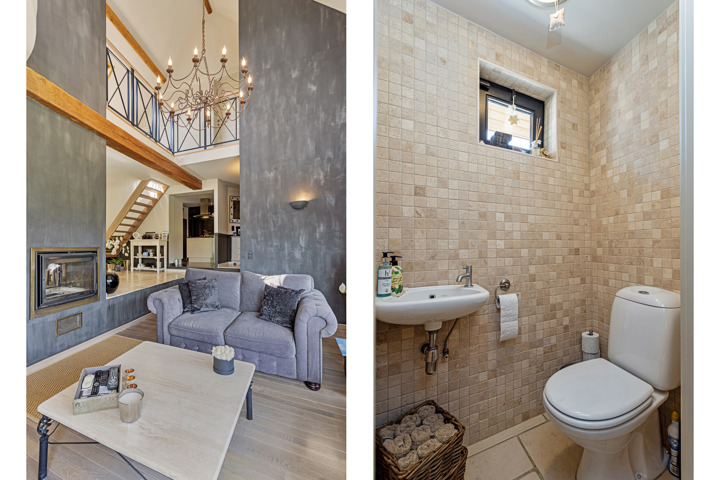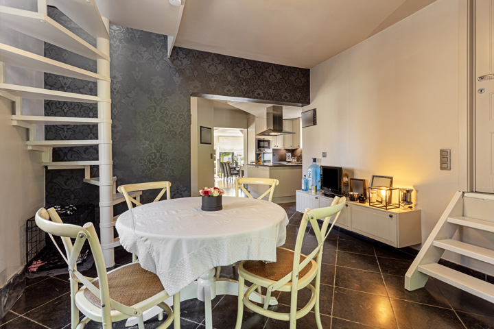 Charmante woning in landelijke stijl, voor 95% heropgebouwd in de periode 1993-2005. Hierbij werd gebruik gemaakt van duurzame en kwaliteitsvolle materialen, oa. Bourgondische witsteen in de leefruimte, gecombineerd met voleiken parket (22mm) met aansluitend in de keuken blauwe hardsteen, idem keukentablet.......dit werd doorgetrokken tot het zeer ruime terras (17m² + 53m²), deels overkapt. De woning is als volgt ingedeeld: - gelijkvloers: inkomhal met toilet, zeer lichtrijke leefruimte (met mezzanine, wat tevens een zeer ruimtelijk gevoel met zich meebrengt) met verzonken salongedeelte, gescheiden door een doorkijkhaard (merk DONBAR), aansluitend de leefkeuken (met authentieke spoelbak, microgolf oven, warme lucht oven, vaatwasser, side by side koelkast, ceramisch kookfornuis, dampkap...) en de badkamer. De keuken geeft toegang tot het zeer ruime terras met vervolgens de tuin. - verdieping: 2 slaapkamers (dewelke allebei via een afzonderlijke trap bereikbaar zijn) en een zeer ruime overloop/mezzanine (eventueel geschikt voor een derde slaapgelegenheid) en een berging. Rechts van de woning bevindt zich de garage. TROEVEN: instapklaar !!!, zeer lichtrijke woning, warme stijl, grote tuin, zeer vlotte bereikbaarheid.... Interesse in deze aanbieding? Aarzel niet een bezoekmoment te reserveren via affligem@immoaccenta.be. Meer info vindt u op www.bellestraat261.be.