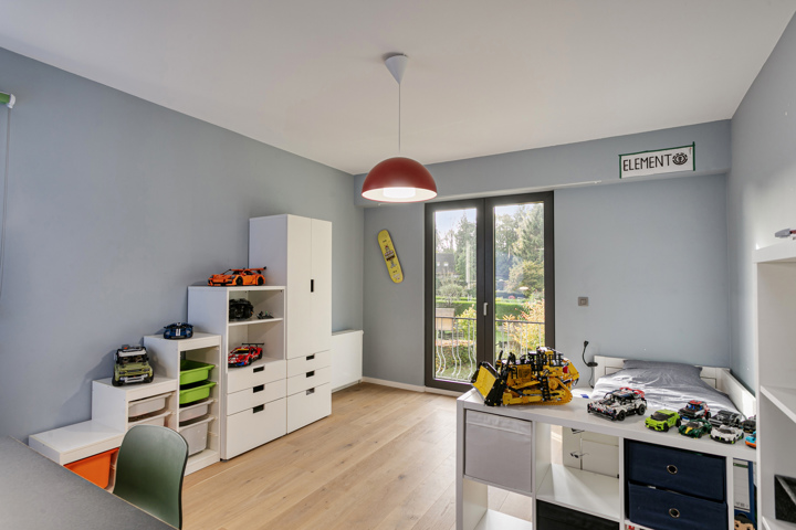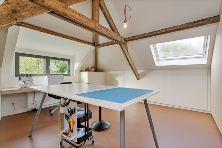 De zolderverdieping die volledig uitgewerkt is met inbouwkasten op maat biedt plaats aan een zeer handige werkruimte maar kan eveneens dienst doen als slaapkamer of zelfs omgevormd worden tot 2 slaapkamers indien gewenst.
