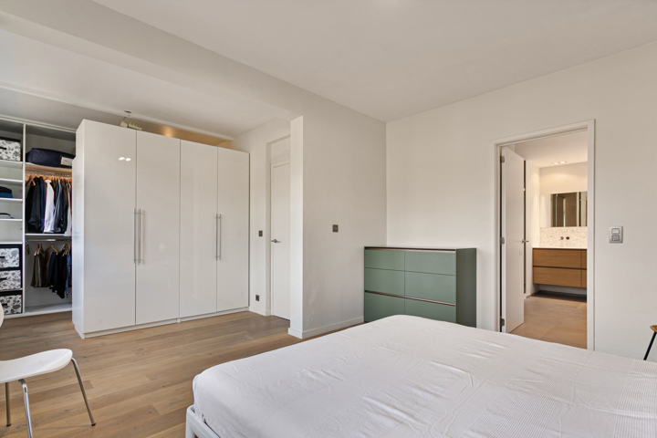 Deze heeft volgende indeling: de master bedroom met dressing met ensuite badkamer(bad en douche,...). twee ruime slaapkamers(18m2) met aparte badkamer en toilet in de nachthal.