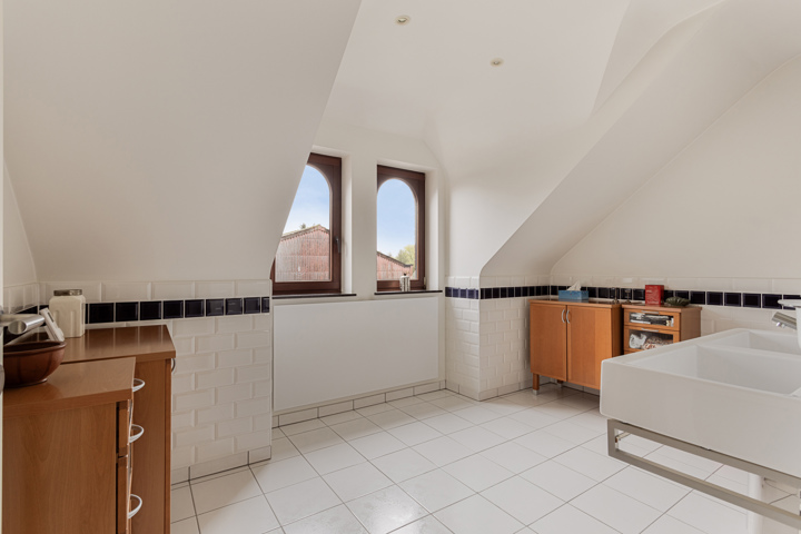 Een extra troef is de dakverdieping, die nog volledig naar wens kan worden ingericht en bereikbaar is via een vaste trap, waardoor er mogelijkheden zijn voor extra slaapkamers, een hobbyruimte of een studeerkamer.