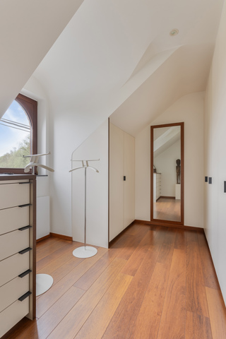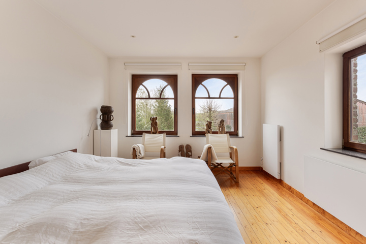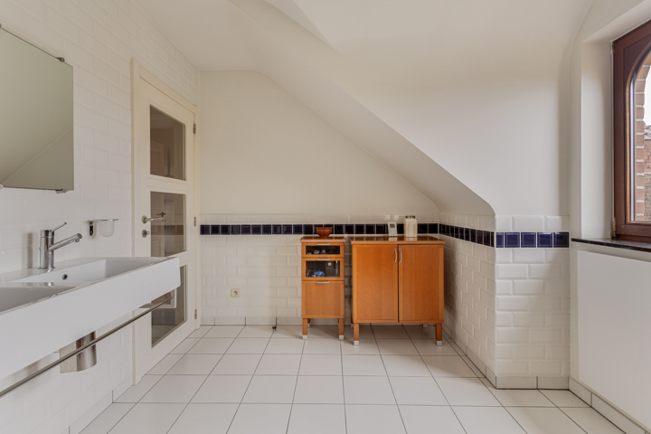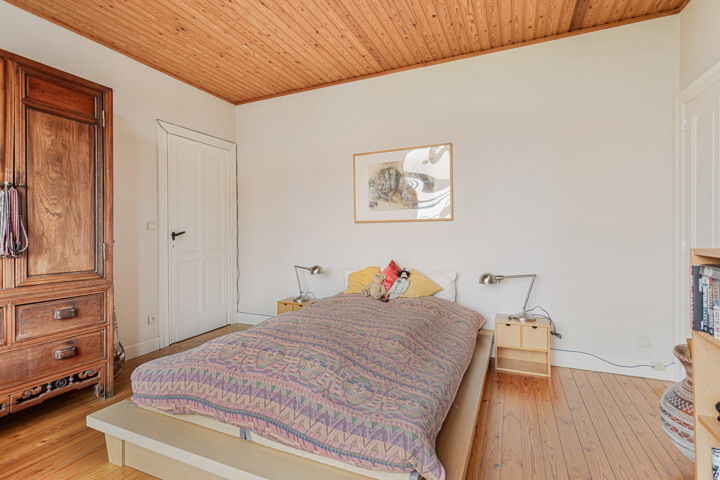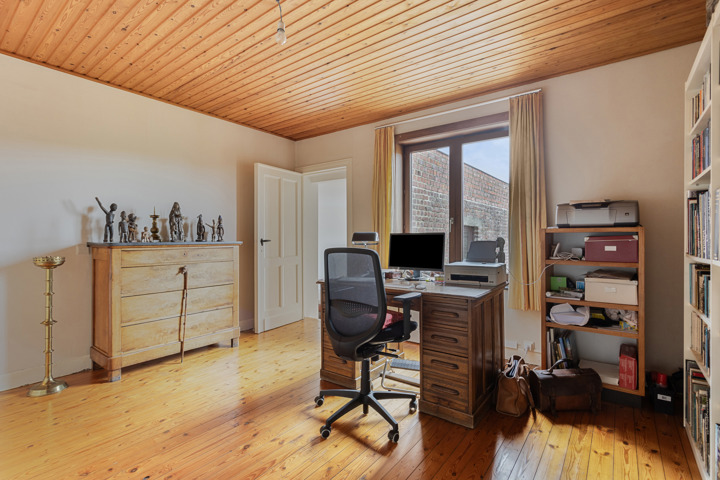 De bovenverdieping biedt ruimte aan drie zeer ruime slaapkamers, een bureau dat veel mogelijkheden biedt voor werk of studie, een smaakvolle badkamer en een praktische dressing om kleding en accessoires op te bergen.