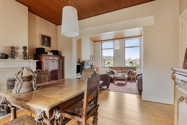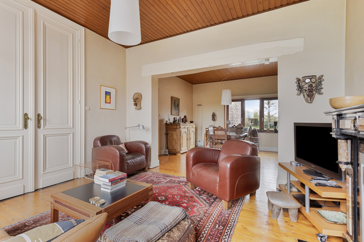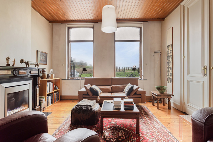 Op het gelijkvloers bevindt zich een volledig uitgeruste keuken, ideaal voor culinaire avonturen, een ruime en lichtrijke leefruimte met gashaard waar gezelligheid centraal staat, en een handig gastentoilet.