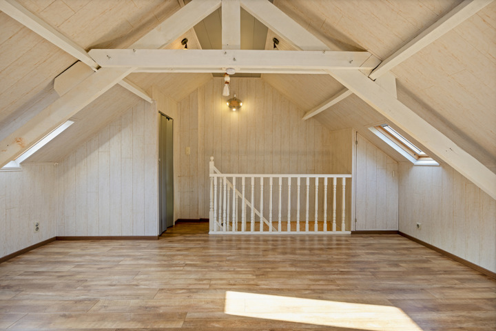 Op de verdieping zijn twee slaapkamers en een vernieuwde badkamer aanwezig . De afgewerkte zolder voorzien van een berging , biedt gelegenheid tot een derde slaapkamer of een multi- functionele ruimte.