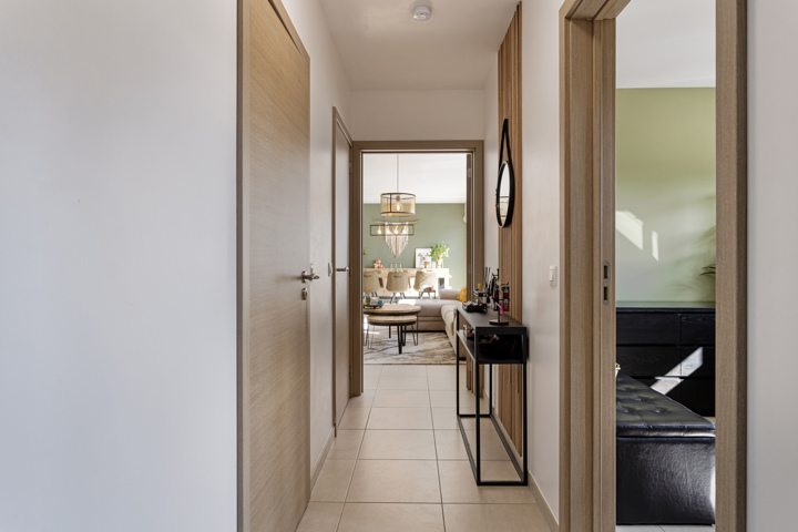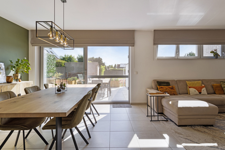 *** ONDER COMPROMIS na 1ste bezoekdag *** Recent gebouwd (anno 2018) en energiezuinig appartement te Denderleeuw op wandelafstand van diverse winkels/warenhuizen, scholen, openbaar vervoer en het treinstation Denderleeuw. Desondanks het appartement zich op de 1ste verdieping bevindt, grenst de leefruimte toch aan een groen dak met achterliggende gemeenschappelijke tuin. Waardoor men over dezelfde beleving van een gelijkvloersappartement beschikt maar eveneens van de rust van een appartement op de 1ste verdieping kan genieten. Het appartement werd als volgt ingedeeld: Een inkomhal met gastentoilet, een afzonderlijke berging/wasplaats, een slaapkamer (momenteel opgesplitst in bureau + dressing), een ruime en lichtrijke leefruimte met open keuken, een badkamer en een 2e slaapkamer. Een grote troef van dit appartement is het ruime terras van +- 20m² met achterliggend groen dak en gemeenschappelijke tuin. EXTRA PLUSPUNTEN: | Werkelijk instapklaar | Elektriciteit is conform | Verwarming via condensatieketel op aardgas | Zeer energiezuinig (EPC: A) | Lift aanwezig | Maandelijkse lasten bedragen +- 120 euro | Extra parkeergelegenheid mogelijk in het gebouw | Wenst u meer informatie of een bezoek? Aarzel niet om ons te contacteren.