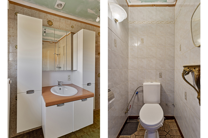 Badkamer: Functionele badkamer die de slaapkamers op het gelijkvloers bedient.