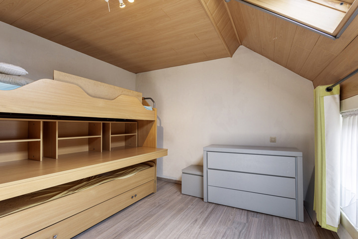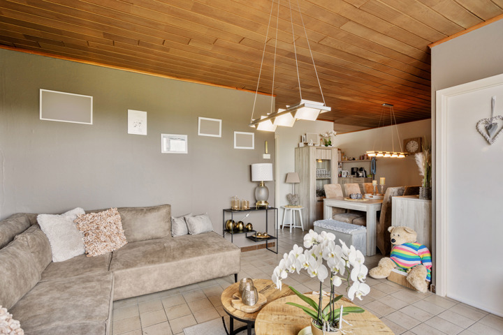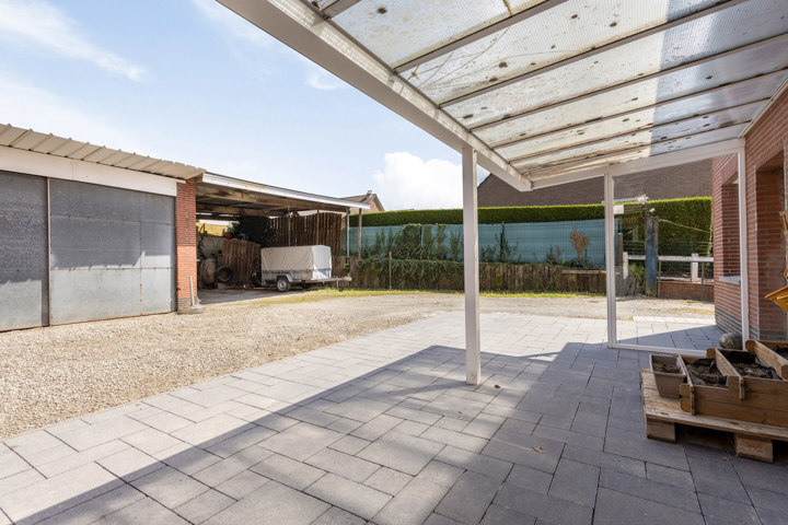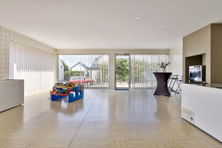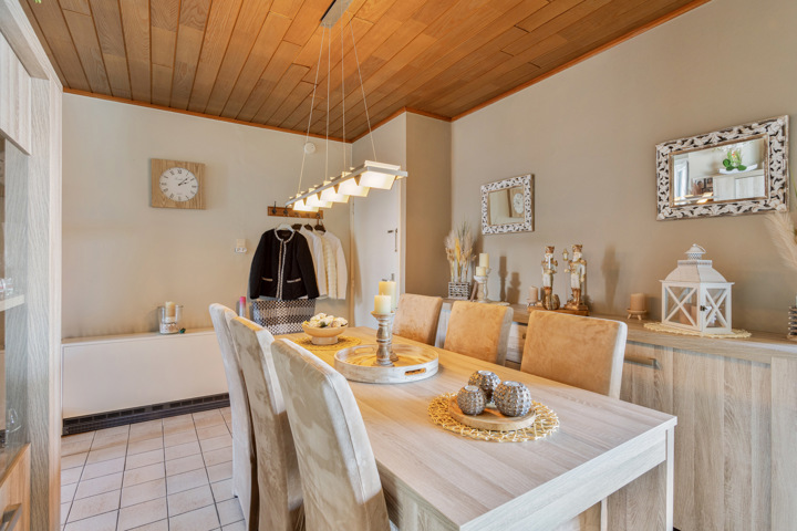Ze werd als volgt ingedeeld: gelijkvloers: inkomhal, leefruimte met open ingerichte keuken, aparte bureauruimte, toilet, berging/wasplaats en terras. Eerste verdieping: nachthal, badkamer met ligbad, douche, dubbele lavabo en toilet, 3 slaapkamers waarvan 1 met mezzanine en opbergzolder. Er is parkeermogelijkheid naast en achteraan de woning alsook een carport en ruime garage.