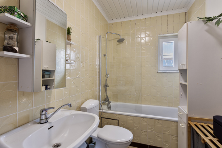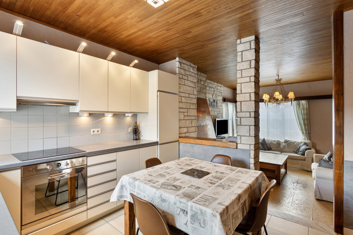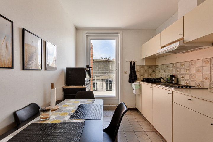 Boven de handelsruimte bevinden zich 2 appartementen van 70m² met aparte ingang vooraan. Deze bestaan uit een leefruimte met open keuken, 2 slaapkamers, badkamer met enkele lavabo, ligbad met douchefaciliteit en toilet en terras achteraan. De ramen werden reeds vernieuwd in PVC dubbele beglazing (2022). Het plat dak werd eveneens vernieuwd en geïsoleerd (2022).
