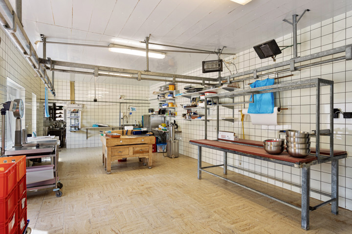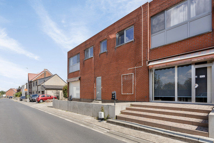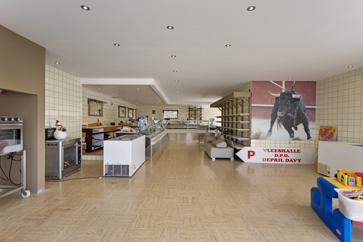 Handelsruimte: voormalige slagerij met winkelruimte van 112,30m², atelier/werkplaats van 70,10m² met frigokamer en magazijn van 83,10m² met zolderruimte. Links naast de winkel is er voldoende parkeermogelijkheid.