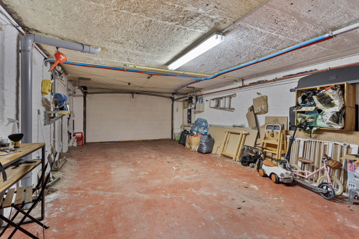 De woning is volledig onderkelderd, dit biedt plaats aan minstens 1 wagen en extra bergruimte achteraan vinden we de ruime wasplaats terug.