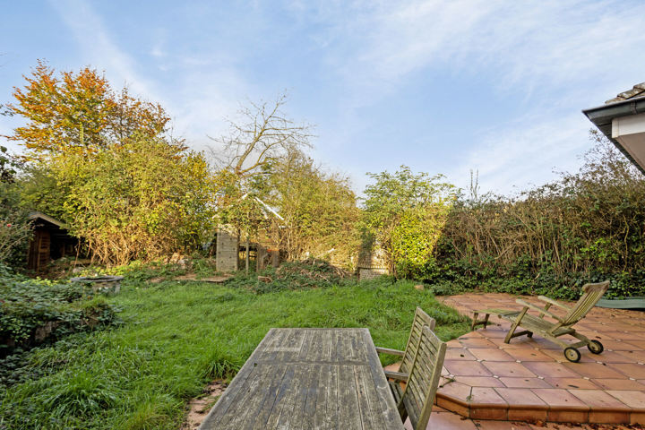 Aan de achterzijde van de woning ligt een mooie, private tuin. Hier vindt u rust en privacy in een groene omgeving – de ideale plek om te ontspannen of om gezellig buiten te dineren.