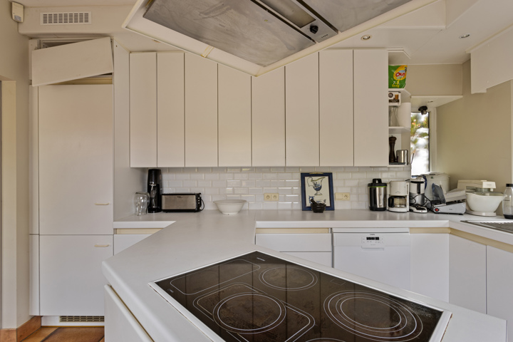 Bij het binnenkomen via de stijlvolle inkomhal met gastentoilet en handige douche. De leefruimte is royaal en verbindt op harmonieuze wijze de gezellige zithoek met de ruime eetplaats, waar u geniet van overvloedig natuurlijk licht door de grote raampartijen. Aansluitend bevindt zich de praktische keuken, een perfecte ruimte voor de kookliefhebber, voorzien van alle nodige bergruimte.