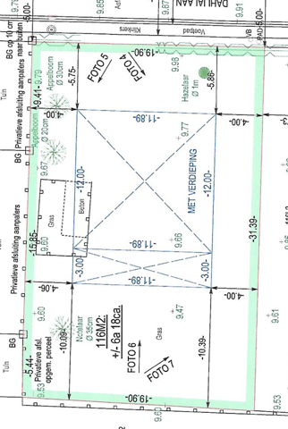 Breedte 20m aan straatzijde, biedt de mogelijkheid van het bouwen van een woning van 12m x 15m = 180m2 gelijkvloers