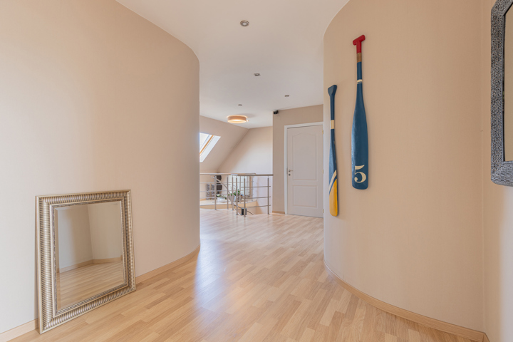 Op de bovenverdieping zijn er vier ruime slaapkamers die veelzijdig in te richten zijn naar eigen smaak en behoefte. Daarnaast is er een moderne badkamer die comfort en stijl uitstraalt. De royale nachthal biedt bovendien de mogelijkheid om een thuiskantoor of extra ontspanningsruimte in te richten, perfect voor wie thuis werkt.