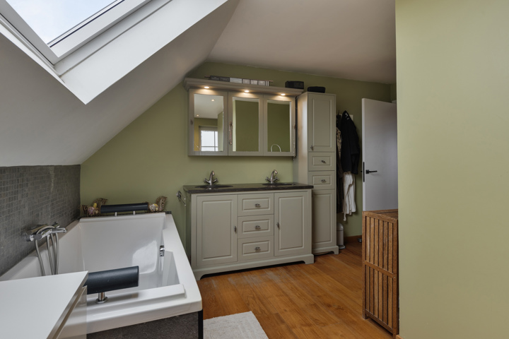 De ruime indeling en de gunstige ligging maken dit een ideale thuis voor wie houdt van rust, maar toch alle voorzieningen binnen handbereik wil hebben (winkel(s), openbaar vervoer op 200m) Bij het binnenkomen valt meteen het zeer ruime salongedeelte (53 m²) op, waar natuurlijk licht en een gezellige sfeer hand in hand gaan met aansluitend de full-geëquipeerde keuken met eethoek. Vervolgens het waslokaal en de garage. Op de verdieping heeft deze woning een ruime nachthal, drie comfortabele slaapkamers, waarvan één met een ensuite dressing, en een badkamer met dubbele lavabo, ligbad, toilet en inloopdouche. Alsof dit nog niet genoeg is, zijn er ook nog 2 zolderruimten voor extra berging en een kelder. Dit alles zorgt voor extra gemak en luxe. De zongerichte tuin nodigt uit tot ontspannen en genieten van de buitenlucht, terwijl de directe nabijheid van wandel- en fietsroutes ideaal is voor natuurliefhebbers. Deze woning is volledig instapklaar en wacht op nieuwe bewoners die haar met evenveel liefde zullen bewonen. Interesse? Contacteer ons voor een bezoek via kurt@immoaccenta.be en bezoek de individuele website www.oudebaan134.be