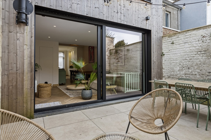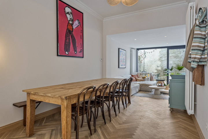 *** ONDER COMPROMIS na 1ste bezoekdag! *** Ontdek deze instapklare, hoogwaardig afgewerkte woning gelegen te Eugeen Bosteelsstraat 34. Bij binnenkomst verwelkomt de ruime inkomhal u met een gastentoilet, waarna u doorloopt naar de open leefruimte. Hier geniet u van een ultieme leefkeuken, naadloos verbonden met een lichtrijke eetplaats en een gezellige zithoek. Achteraan bevindt zich een sfeervolle stadskoer, onderhoudsvriendelijke buitenruimte gegarandeerd.