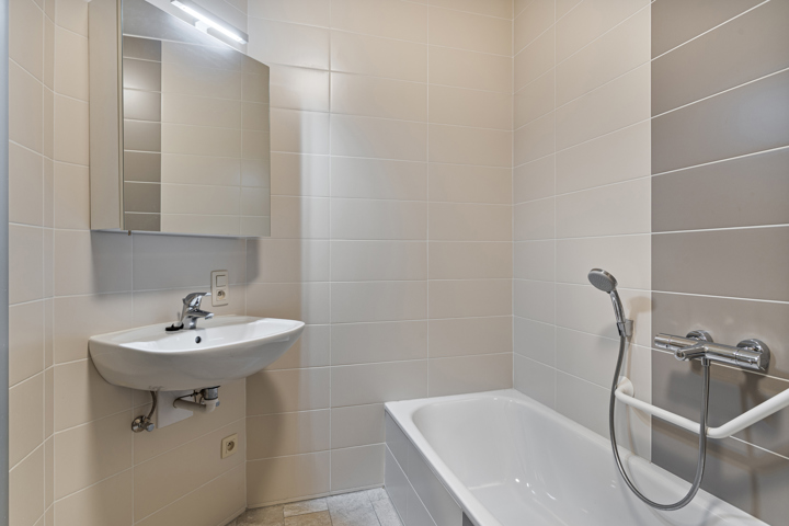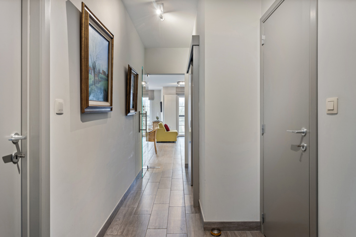 *** ONDER COMPROMIS NA 1STE BEZOEKDAG!!! *** Residentie Assisi is een toonbeeld van moderne architectuur, zich situerend aan de rand van een oase van groen, waar ruimte is voor allerhande recreatieve ontspanning. Dit recent 2-slaapkamer appartement is gelegen nabij het centrum van Waasmunster, belangrijke verkeersaders (E17) en op wandelafstand van de Heide en de Durmevallei. Winkels, scholen en openbaar vervoer bevinden zich op een steenworp. Dit in 2011 opgetrokken appartementsgebouw werd afgewerkt met duurzame materialen en steeds zeer goed onderhouden. De lift in het gebouw maakt het appartement toegankelijk voor jong en oud! Ze werd als volgt ingedeeld: - Tweede verdieping: de inkomhal/nachthal, een ruime lichtrijke leefruimte met open keuken voorzien van een enkele spoelbak, keramische kookplaat, dampkap, microgolfoven en koelkast met vriesvak. Aansluitend aan de leefruimte treffen we het aangenaam zonneterras met uitzicht op de groene omgeving. Verder vinden we nog de berging/wasplaats, een aparte toilet, de badkamer met enkele lavabo, inloopdouche en ligbad en 2 ruime slaapkamers. Er is één autostaanplaats in de ondergrondse garage die verplicht dient aangekocht te worden. Deze zit reeds vervat in de vraagprijs. Verder is er voldoende parkeermogelijkheid vóór het gebouw. Voor meer informatie of een bezoek? Stuur gerust een mail naar eva@immoaccenta.be