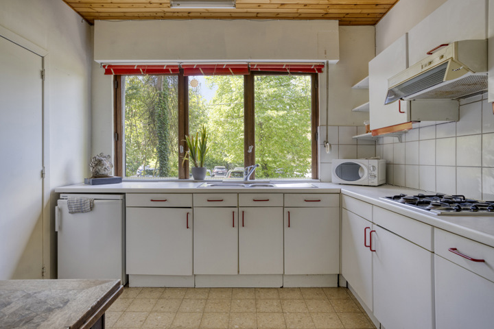 *** ONDER COMPROMIS BINNEN 7 DAGEN *** Grondig te renoveren villa op een bosrijk perceel van +- 26a. De woning is zeer strategisch gelegen en bevindt zich in dichte nabijheid van scholen, openbaar vervoer, belangrijke verbindingswegen en diverse warenhuizen/winkels. Toch is ze gelegen in een zeer rustig straatje met zeer weinig voorbijgaand verkeer. De indeling is als volgt: op het gelijkvloers: een ruime inkomhal, een leefruimte, een keuken + bijkeuken, een afzonderlijk toilet, een 2e keuken en een 2e leefruimte met douchekamer en wasplaats (dit was vroeger de garage en kan eenvoudig terug omgevormd worden tot garage of dienen als praktijkruimte. De nachthal geeft op de eerste verdieping toegang tot 4 slaapkamers en de badkamer. De 5e slaapkamer is bereikbaar via een andere slaapkamer of via de trap in de 2e leefruimte. De zolderverdieping is toegankelijk via een vlizotrap. Extra troeven: De woning is omgeven door groen en prachtige bomen | Diverse uitbreidingsmogelijkheden aanwezig | Tonnen aan potentieel | Zeer ruime oppervlakten | Ideaal voor zelfstandigen, vrije beroepen, grote gezinnen, .... | Wenst u meer informatie of een bezoek? Aarzel niet en mail ons naar Laurens@immoaccenta.be