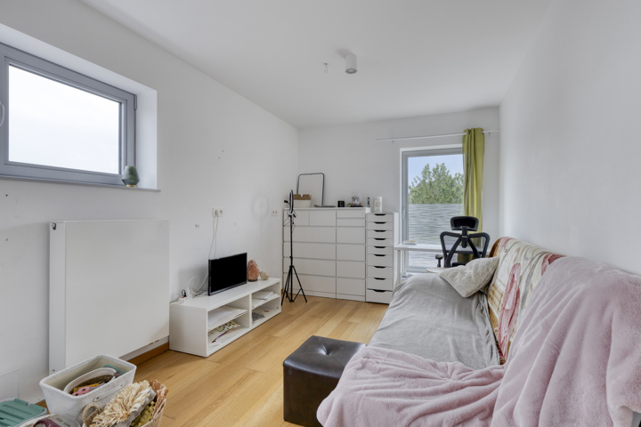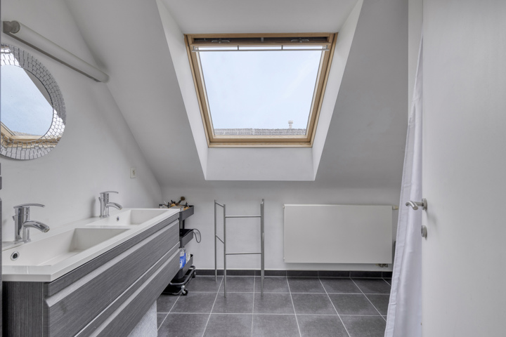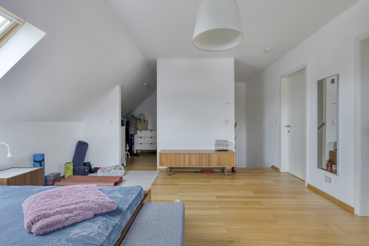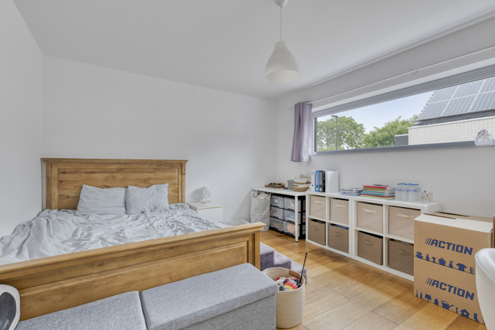 Op de eerste verdieping vind je een grote mezzanine die uitstekend dienst kan doen als tweede leefruimte, speelruimte of thuiskantoor. Verder zijn er twee volwaardige slaapkamers en een tweede badkamer.